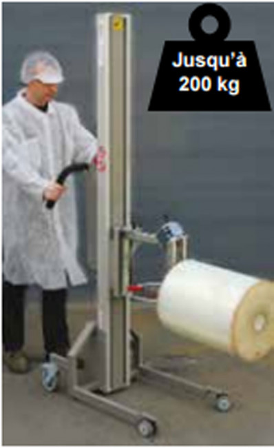 12/10/2022elevateur manipulateur de bobines de films inox à commande manuelle avec soit un mandrin soit un berceau pour la bobine