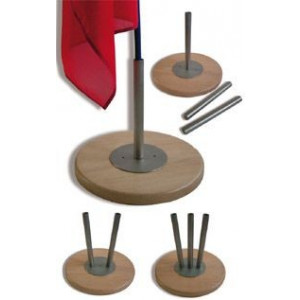 soit : un socle modulable pour un, deux ou trois drapeaux