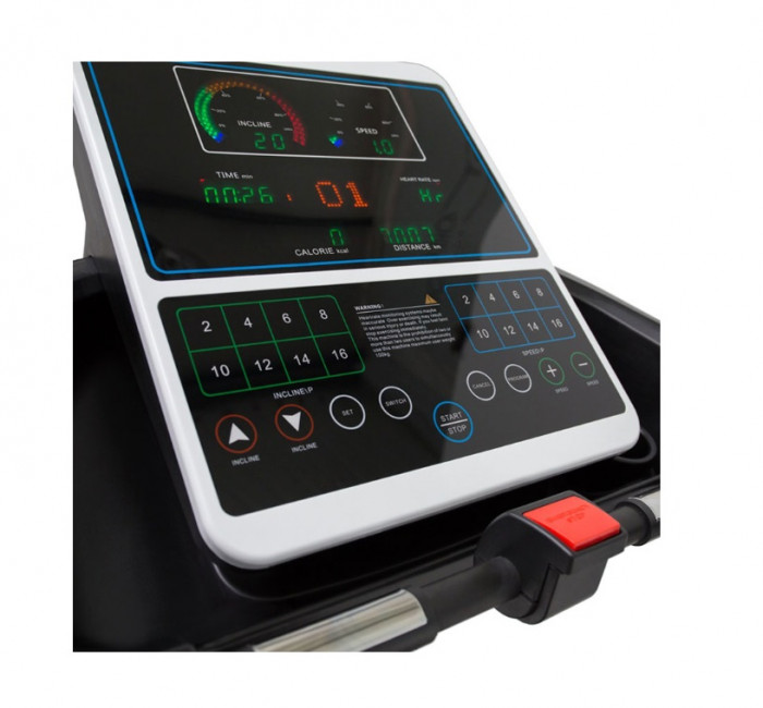 - Affichage du temps, de la vitesse, de l’inclinaison, de la fréquence cardiaque, de la distance des calories