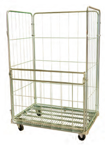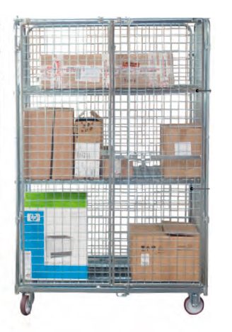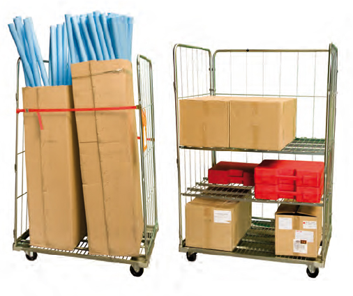En série, roues polypropylène Ø 100 mm : 2 fixes + 2 pivotantes.
