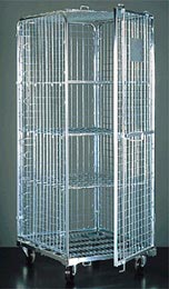 Je recherche 2 rolls sécurisés charge 400kgs base standard hauteur maxi 1500mm*830*720 maille 50*50mm 2 roues fixes et 2 pivotantes diam 100mm ouverture sur côté de 720mm + 2 étagères.