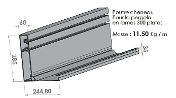 structure en aluminium avec poutres et chêneau, assurant une évacuation optimale de l’eau de pluie.