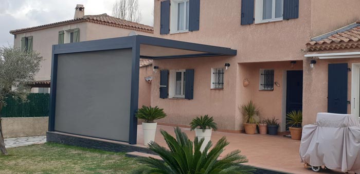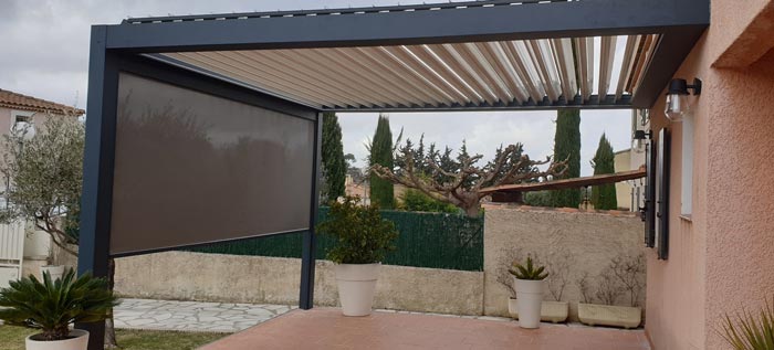 pergola bioclimatique à lames plates est une solution pour aménager un espace extérieur tout en régulant la lumière et la ventilation.