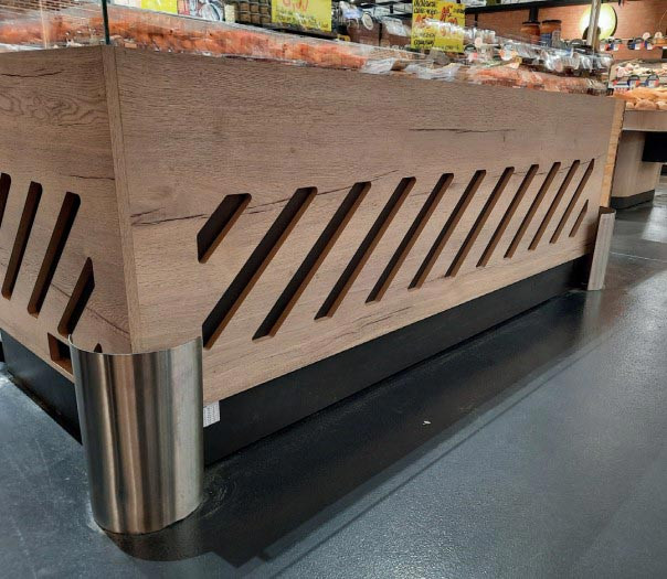 La finition brossée permet d’obtenir un rendu visuel sobre et qualitatif, en cohérence avec les mobiliers inox et les aménagements modernes des grandes surfaces et magasins spécialisés.