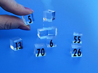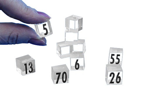 Pour le balisage des légendes de vos vitrines, des cubes en Plexiglas de 12 mm de section pour pose de chiffre ou lettre par adhésif ou transfert. (non fourni).