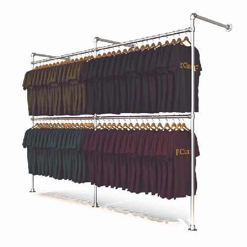 J"aménage un showroom et j"ai besoin de plusieurs éléments en porte-vêtements mural double.