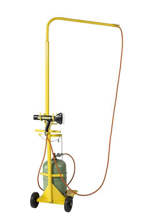 Ce chariot porte bouteille avec potence permet de constituer un poste de rétraction mobile.