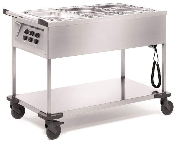 Chariot bain-marie, chauffant , ouvert en bas pour 3 cuves x 1/1 GN jusqu'à une profondeur de 200 mm.