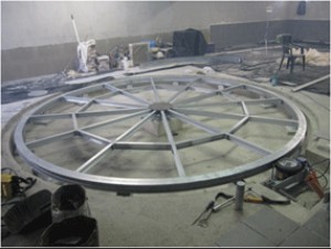 Plateau Ø 2.70m, composé d’éléments à ossature aciers soudés + recouverts d’une tôle antidérapante