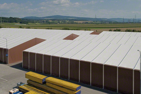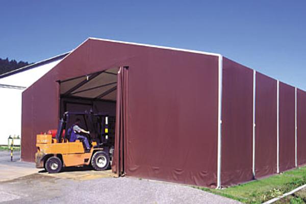 - Chapiteau industriel non isolé avec bâches PVC en toit et murs