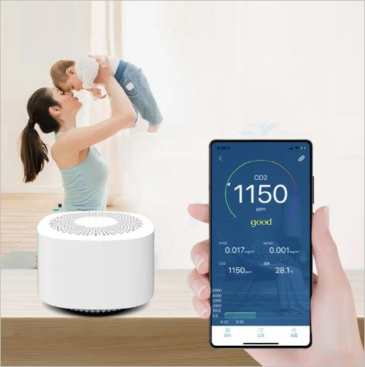 Créez un environnement sain pour vous et votre famille, maximisez votre confort, améliorez votre sommeil et optimisez votre productivité avec le Capteur de Qualité de l'Air Intérieur.