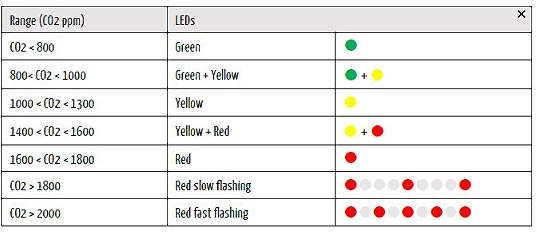Elle affiche les résultats de manière claire à travers une signalisation tricolore (vert, jaune, rouge) permettant de visualiser instantanément les variations de la concentration de CO₂.