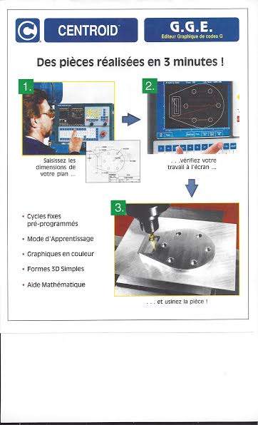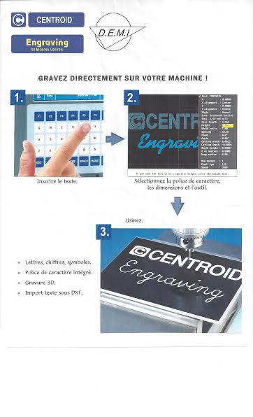 Cette machine est équipée de la CNC CENTROID 3-4 et 5 axes "conversationnelle" avec une programmation très simple et directe permettant de réaliser des pièces basiques et sophistiquées avec des temps de fabrication extrêmement courts .