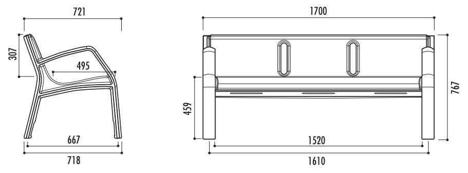| Réf. TC :427704063 | Banc plastique recyclable | 1700 | 721 | 767 | Gris noir - RAL 7021 | 10 | -