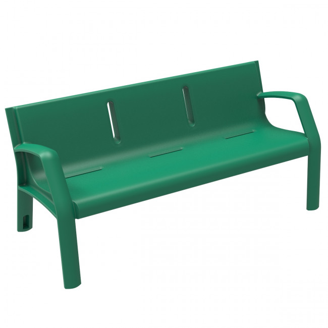 Fabriqué en polyéthylène 100 % recyclable, ce banc offre une grande solidité grâce à son traitement anti-U.V.