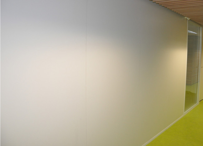 Le module plein bord à bord permet de créer des cloisons parfaitement lisses sans structure aluminium visible. Elle consiste en des modules pleins avec des panneaux apposés bord à bord sans couvre joint.