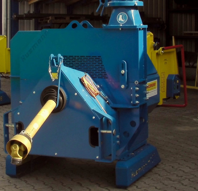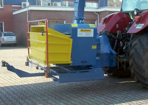 La capacité de production d’environ 12 m3/H suivant les produits et les conditions de travail, elle produit une plaquette de 12 à 40 mm. Elle est entraînée par prise de force 1000T/min, la puissance minimum du tracteur doit être de 50 CV.