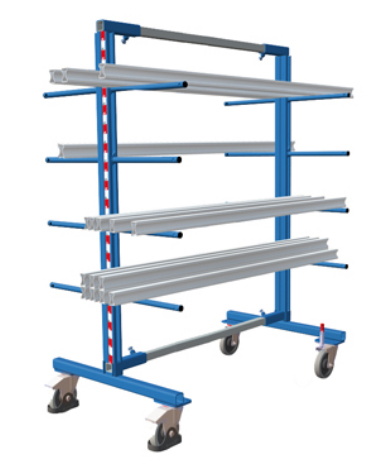 Nos racks cantilever mobiles s'adaptent parfaitement au stockage de charges longues jusqu'à 400 kg.