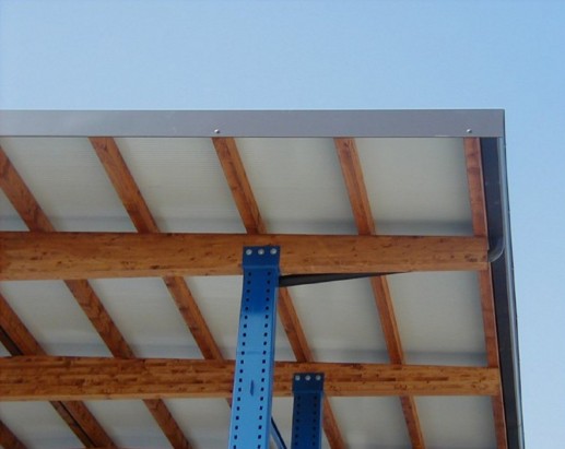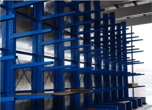 Bâtiment autoportant pour les colonnes des rayonnages cantilever, afin de supporter la toiture et le bardage du bâtiment.