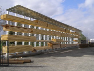 Stockage extérieur de bois besoin de cantilever 2 racks longueur 40m linéaire hauteur 2.5m avec toiture .