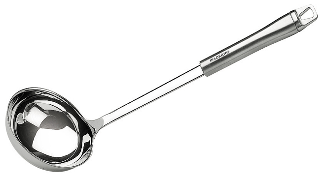 Le manche de la Louche très rigide et large , Très robuste Grande solidité .