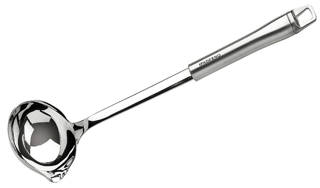 Le manche de la Louche très rigide et large , Très robuste Grande solidité .