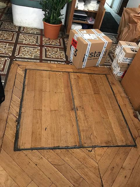 La trappe à 2 avantages se referme à plat une fois le monte-charge rangé, ce qui permet d'utiliser toute la surface du sol.