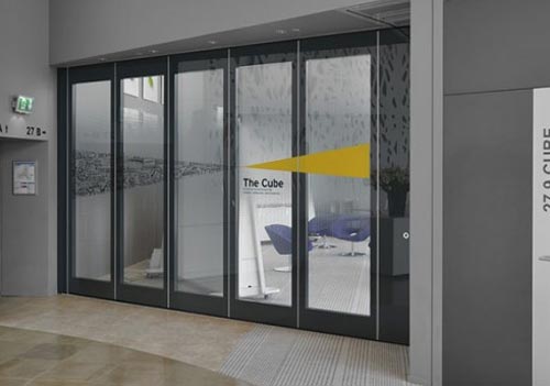- Le mur mobile vitré est composé de plusieurs éléments indépendants et suspendus qui se coulissent via un rail encastré dans le plénum.