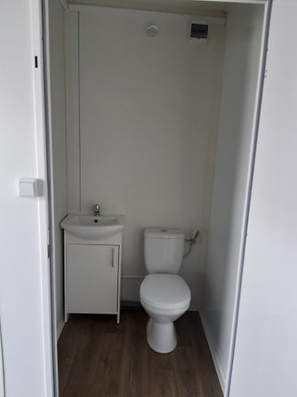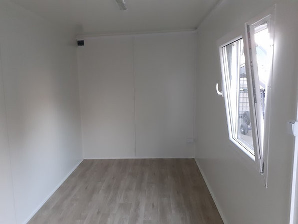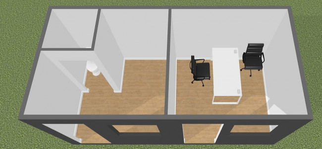 Conteneur social 17m2 + bureau + wc, chêne doré
