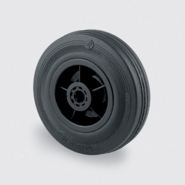 Roue corps polypropylène noir, Bandage en caoutchouc semi élastique noir