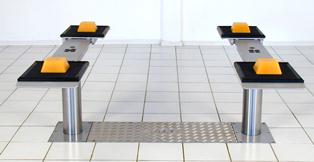 La cassette est encastrée dans le sol et permet un dégagement total de l'espace lorsque le pont est en position basse.