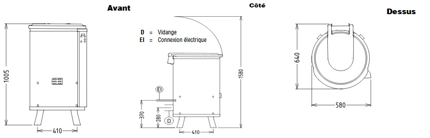 Capacité de cuve : 65 lt Puissance : 0.75 kW Poids : 53 Kg