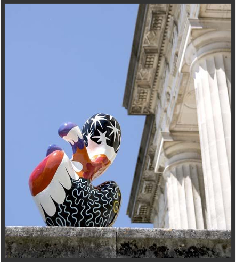 Technique de sculpture: Matériaux composites (polystyrène sculpté, puis ajout de fibres de verre et de résine polyestère, enduit, ponçage et peintures acryliques).
