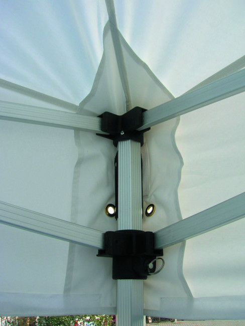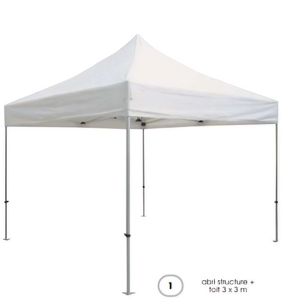 Doté d’une structure en aluminium anodisé, ce stand parapluie est disponible en trois dimensions (3 x 3 m, 3 x 4,5 m et 3 x 6 m).