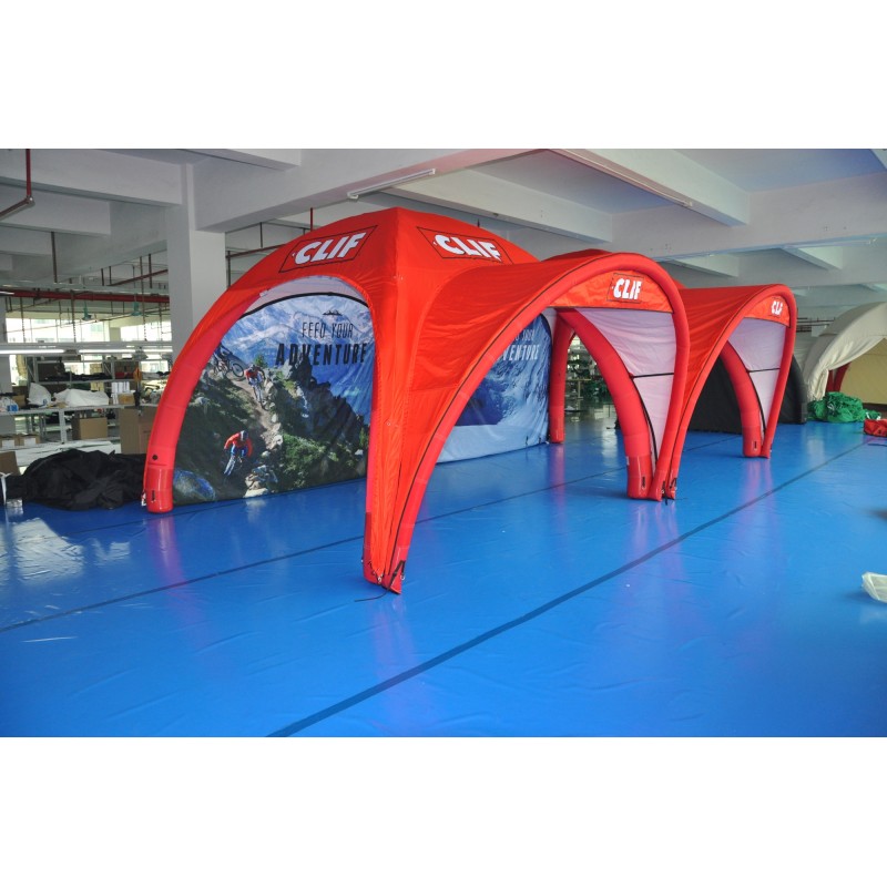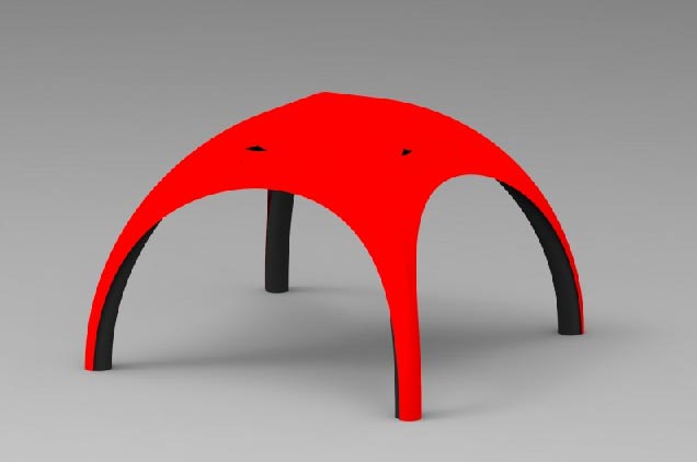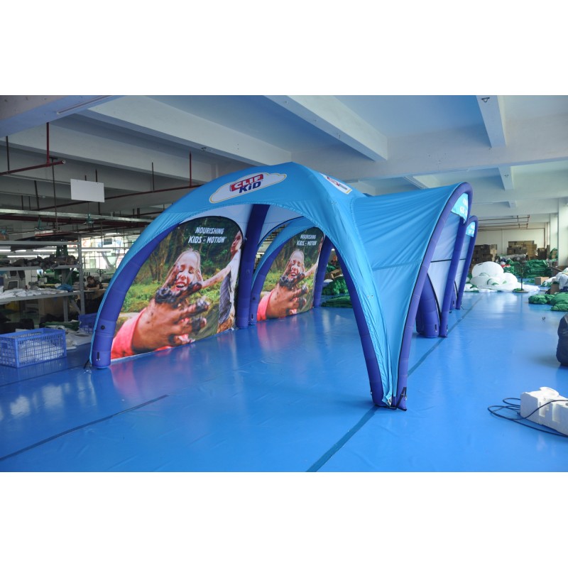 La structure en DACRON est assemblé en son centre pour créer un support solide à la tente, la couverture en polyester enduit (personnalisable) est démontable de la structure gonflable, il reste donc facile de changer le visuel de votre tente.