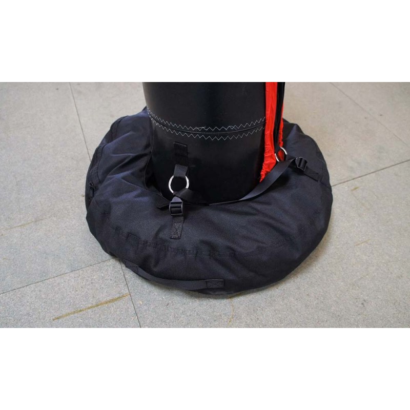 - Un système de sac de lestage en polyester permet un maintien facile de la tente, ces sacs circulaires se place sous les boudins de la tente et sont solidement fixé par un système de sangle.