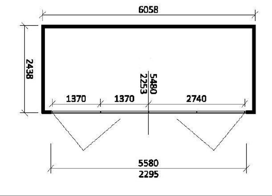 - Dimensions extérieures (L x l x H) mm : 6058 x 2438 x 2591.