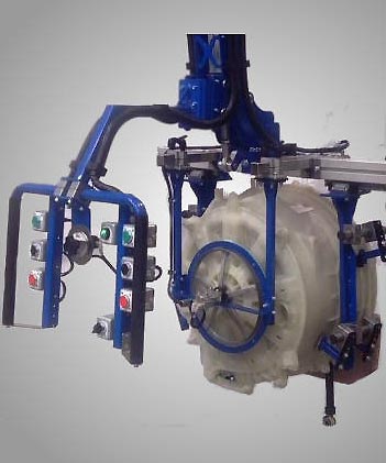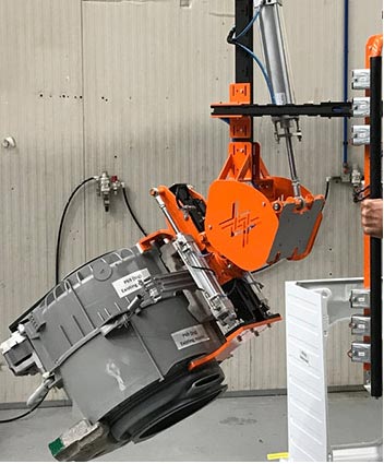 Cette pince de levage est équipée d'une pince multipoint aux dimensions minimales, conçue spécialement pour permettre l'insertion du panier de la machine à laver à l'intérieur du châssis.