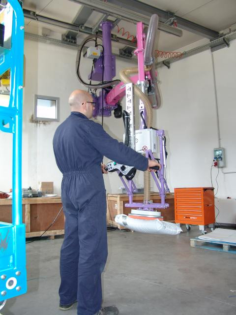 Les ventouses profilées, adaptées aux sacs en PVC ou en papier, offrent une manipulation immédiate, des mouvements réguliers et la douceur caractéristique des manipulateurs pneumatiques.