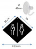 Pancarte WC hommes/femmes en PVC expansé 3mm noir avec ventouse Ø 40 mm à crochet pour fixation.