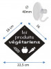 Pancarte "Ici produits végétariens" en PVC expansé 3mm noir avec ventouse Ø 40 mm à crochet pour fixation.