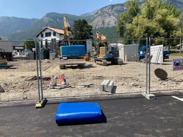 Elle s'adapte facilement aux clôtures mobiles de chantier et offre une installation rapide et efficace.