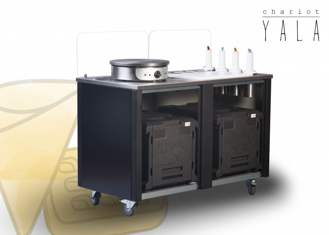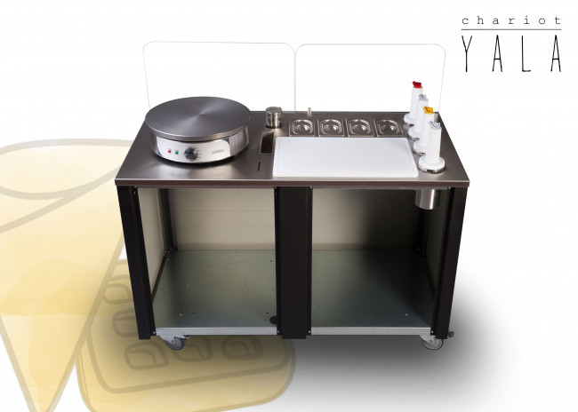 Nos chariots crêpes sont conçus pour faciliter le travail des crêpiers et restaurateurs au quotidien. Compacts, faciles à transporter et à déplacer, ces chariots sont parfait pour la vente ambulante et le take away. Avec le chariot crêpes et gaufres, distinguez vous et créez l'événement ! Ce chariot à crêpe professionnel est conçu pour la fabrication et la vente de crêpes, Gaufres, Waffle bubble et autres produits gourmands.