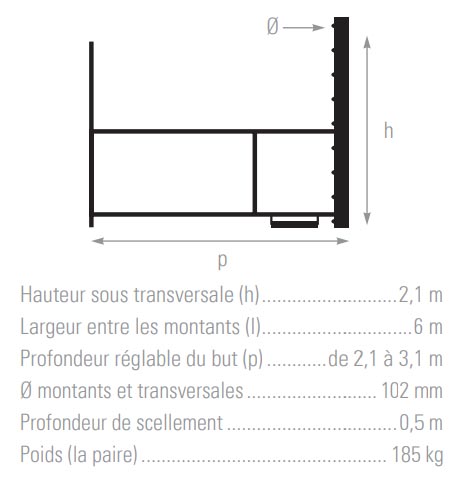Le profil rond des montants et transversales, d’un diamètre de 102 mm, assure la solidité de la structure tout en limitant les risques de blessure lors des phases de jeu au contact du but.
