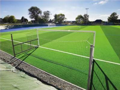 Le système de filet football sans crochets intégré au profilé aluminium sécurise les joueurs et simplifie la mise en place du filet.