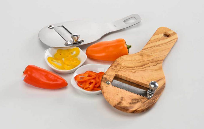 Fabriqué en inox ou en bois (selon modèle), les deux avec une lame crantée.