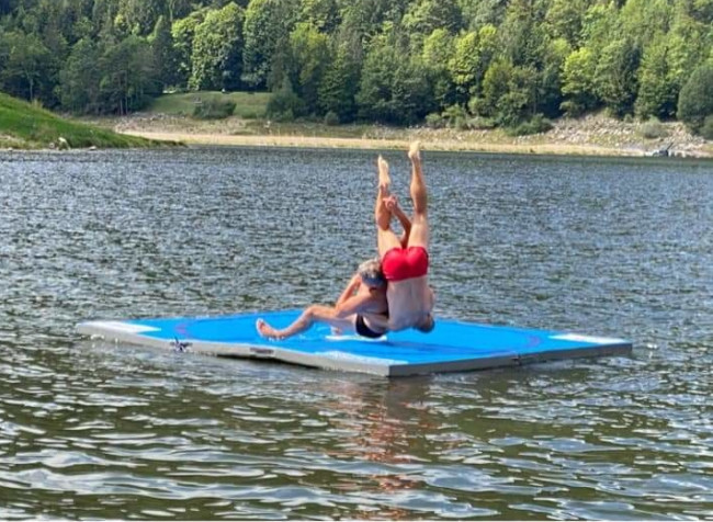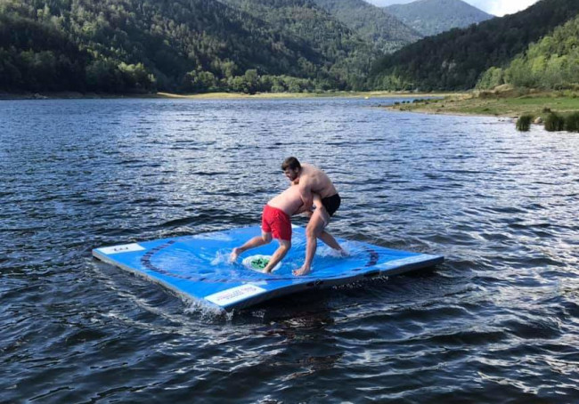 Conçu par la société MG Sport et protégé, le tapis de lutte sur l'eau est idéal pour la promotion de la Lutte.