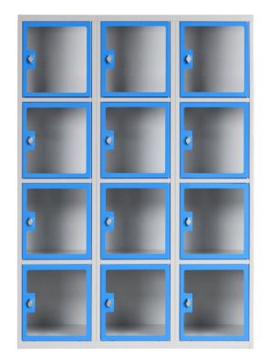 Notre vestiaire métallique portes transparentes grande visibilité est proposé en versions 1, 2 ou 3 colonnes de 4 cases, afin d’ajuster précisément la capacité à la configuration de vos vestiaires.
