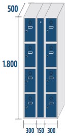 | Réf. TC :912453672 | Vestiaire métallique 4 cases avec prises électriques et USB | 8 | 1800 x 950 x 500 | Serrures de cylindre cromé avec deux clés | -
