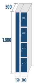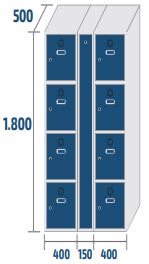 8 portes : - Profondeur : 500 mm - Hauteur : 1800 mm - Largeur : 750 mm 950 mm |
